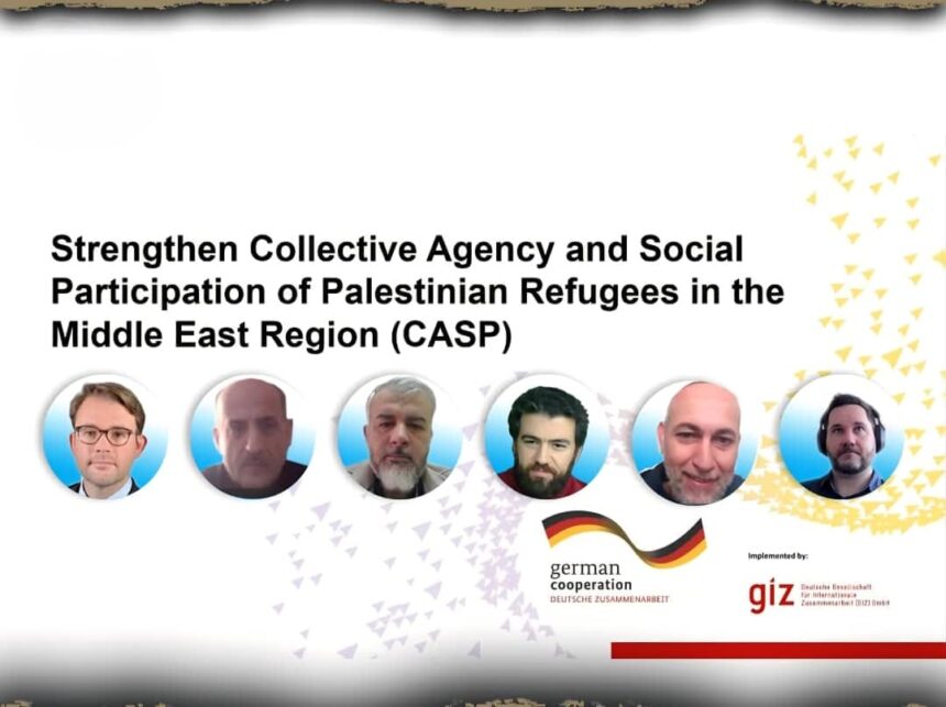 بحثت الهيئة العامة للاجئين الفلسطينيين العرب، اليوم الخميس، مع الوكالة الألمانية للتعاون الدولي (GIZ) سبل تعزيز التعاون المشترك ضمن مشروع “CASP”، الذي يهدف إلى دعم مشاركة اللاجئين الفلسطينيين في القضايا المجتمعية والتنموية.