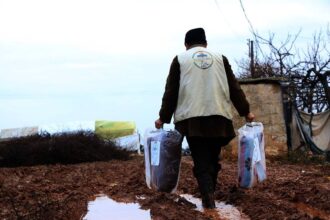 هيئة فلسطيني سوريا للإغاثة توزع مساعداتها على المهجرين الفلسطينيين شمال سورية