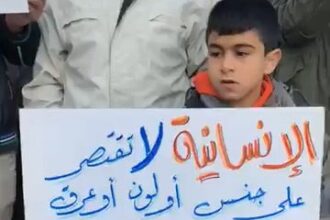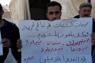 وقفه احتجاجية للمهجرين الفلسطينيين في مخيم اعزار بحلب تطالب بإنقاذهم