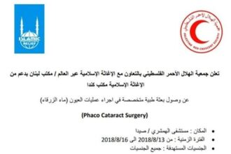 بعثة طبية في لبنان وعمليات مجانية للعيون تشمل الفلسطينيين من سورية