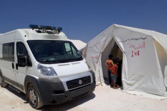 هيئة فلسطينيي سوريا تجهز سيارة إسعاف للمهجرين في مخيم دير بلوط شمال سورية