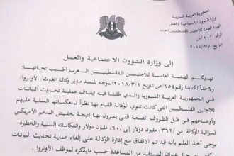 الهيئة العامة للاجئين تؤكد اتفاقها مع الهيئة العامة للاجئين تؤكد اتفاقها مع “الأونروا” على إلغاء الوكالة لآلية تحديث بيانات فلسطينيي سورية