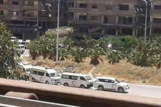 الدفعة الأولى من جرحى تحرير الشام وذويهم يغادرون مخيم اليرموك إلى إدلب