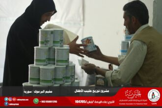 توزيع حليب الأطفال على عدد من عائلات مخيم اليرموك النازحة لجنوب دمشق