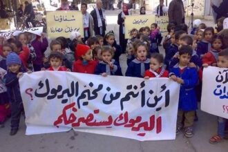 أبناء مخيم اليرموك يعتصمون ويطالبون برفع الحصار عن مخيمهم