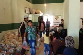 حملة الوفاء الأوروبية توزع مساعداتها الغذائية على اللاجئين الفلسطينيين السوريين في برالياس بلبنان
