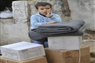 استمرار توزيع المساعدات الغذائية على فلسطينيي سورية في مخيم البداوي