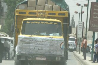 وصول قافلة مساعدات عبر بلدة يلدا لتوزيعها على النازحين من مخيم اليرموك