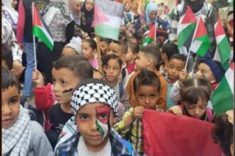مسيرة تضامنية لأطفال في مخيم جرمانا تضامناً مع أطفال غزة