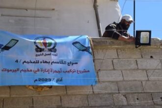 مخيم اليرموك. تركيب أجهزة إنارة تعمل بالطاقة الشمسية في حي الزين