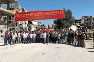 على أنقاض الدمار وركام الحرب.. تصوير فلم صيني في حي الحجر الأسود
