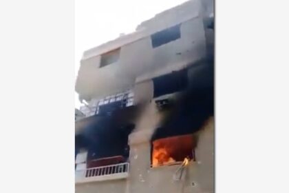 شاهد: عناصر النظام السوري يقومون بإحراق منازل المدنيين في مخيم اليرموك بعد تعفيشها ونهبها.