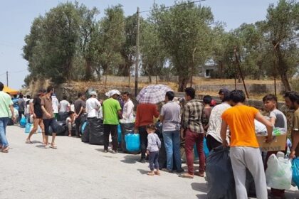 مهجرو جزيرة متليني باليونان يشكون سوء الطعام وصعوبة الحصول على الماء