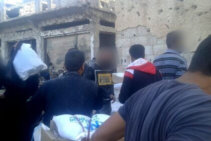 توزيع مساعدات غذائية على أهالي مخيم درعا