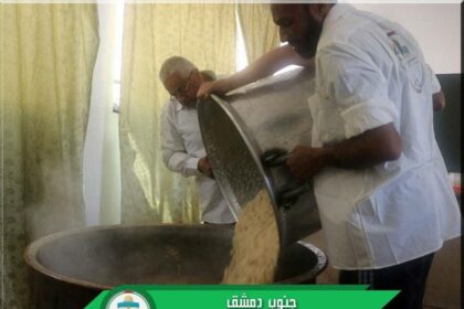 هيئة فلسطينيي سورية تقيم مطبخاً خيرياً لإغاثة نازحي مخيم اليرموك إلى بلدات جنوب دمشق