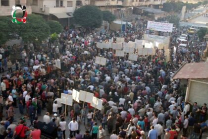 مظاهرة ينظمها أهالي جنوب دمشق رفضاً للتهجير القسري