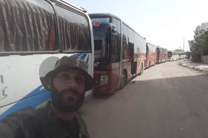 خروج 5 حافلات تقل 200 عنصر من مقاتلي هيئة تحرير الشام من مخيم اليرموك نحو إدلب