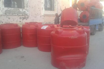 توزيع خزانات مياه بلاستيكية للأسر الفقيرة في مخيم درعا