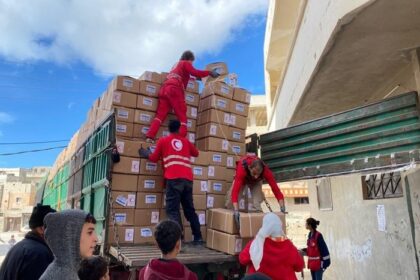مخيم الرمل. الهلال الأحمر الفلسطيني يواصل تقديم الدعم للمتضررين من الزلزال