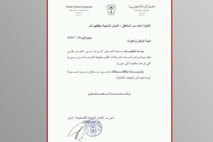 دبور: يطالب اللجان الشعبية تنظيم قوائم بأسماء العائلات الفلسطينية المهجرة في لبنان الراغبة بالعودة إلى سورية
