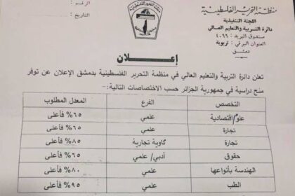 منح دراسيّة في الجامعات الجزائرية لطلبة فلسطين اللاجئين في سوريا