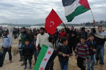احتجاج في مخيم دير بلوط على قرار ترامب بخصوص الجولان