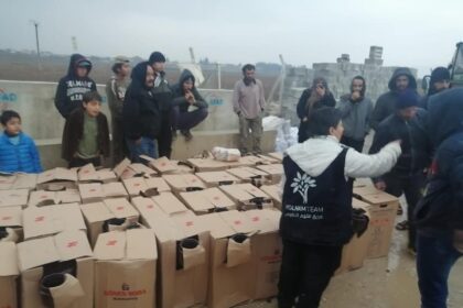 توزيع سلات غذائية في مخيمي دير بلوط والمحمدية شمال سورية
