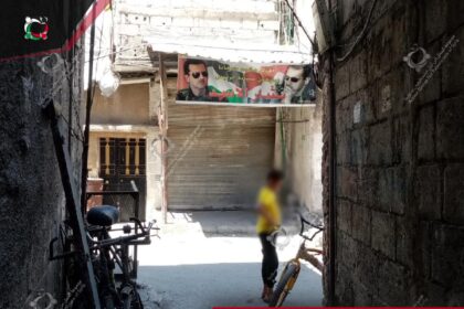 مخيم جرمانا. إجبار أصحاب المحال التجارية تعليق يافطات مساندة ومؤيدة للرئيس