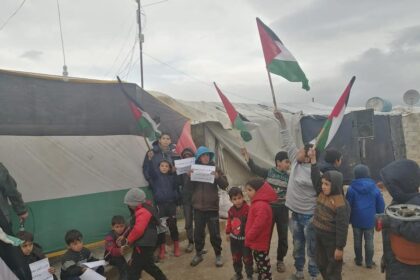 وقفة احتجاجية لأطفال مخيم دير بلوط بـ”صفقة القرن”