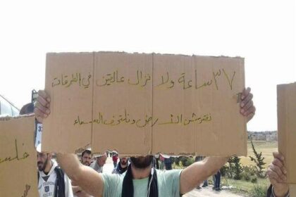 مهجرو مخيم اليرموك يعتصمون احتجاجاً على منع تركيا دخولهم إلى بلدة الباب في حلب