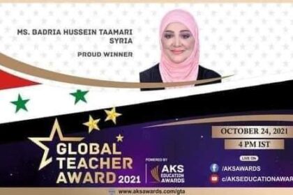 فلسطينية سورية تحصل على لقب المعلم العالمي لعام 2021