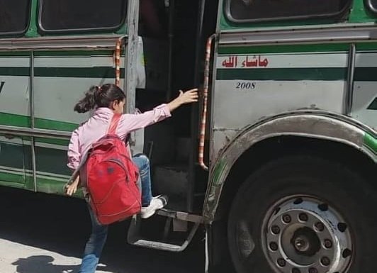 Buses have started entering Yarmouk Camp to give lifts to over 100 students enrolled at schools in AlMaydan and Alzahira, in Damascus.
