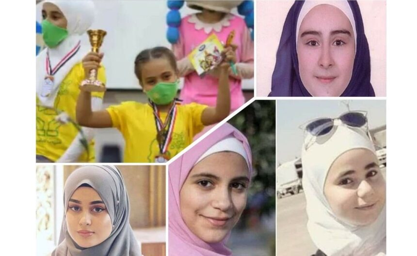 Palestinian sisters Hana and Rana Ahmed Zaki Khayrat, from AlAyedeen refugee camp, in Hama, got the highest scores in Hama city. Their father died under torture in Syrian jails.