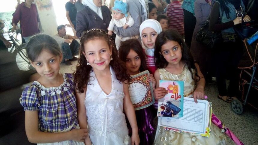 Despite the deteriorated living situation suffered by the Palestinian residents of Yarmouk camp in Damascus from frequent bombing and continuous siege since around (683) days, and despite the deterioration of the situation after ISIS storming to Yarmouk, those things together could not break the will of the children of the camp.Al JArmaq alternative School carried out yesterday a ceremony in honor of the students on the occasion of the end of the school year.