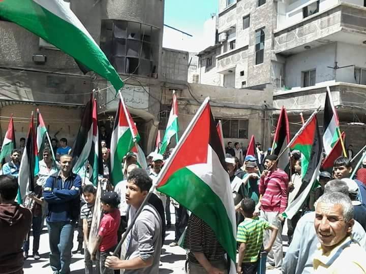 Hundreds of Palestinian refugees from Yarmouk came out yesterday in a massive march through the streets of Yarmouk in order to commemorate the 67anniversary of Palestine Nakba.