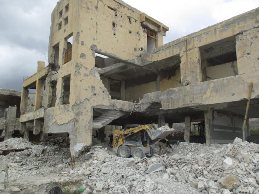 UNRWA has started clearing debris near AlZeib School and the Women’s Centre in Hindarat camp for Palestinian refugees, in Aleppo, north of Syria.