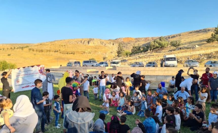 Hundreds of Palestinian refugees, including children, were in attendance. Children received gifts and took part in games and competitions held as part of the event.