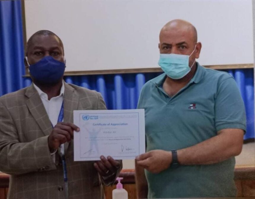 A number of UNRWA cleaning and sanitation laborers were honoured by the Agency’s director of Syria operations, Amanya Michael Ebye.