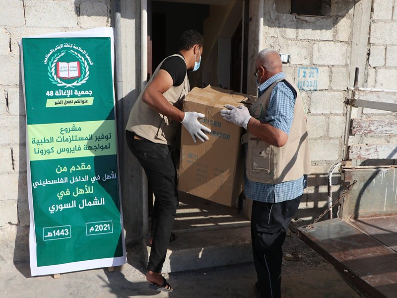 Igatha48 organization, in cooperation with donors from Palestinian territories occupied by Israel since 1948 (present-day Israel), distributed medical supplies to displaced Palestinian refugees sheltered in northern Syria.