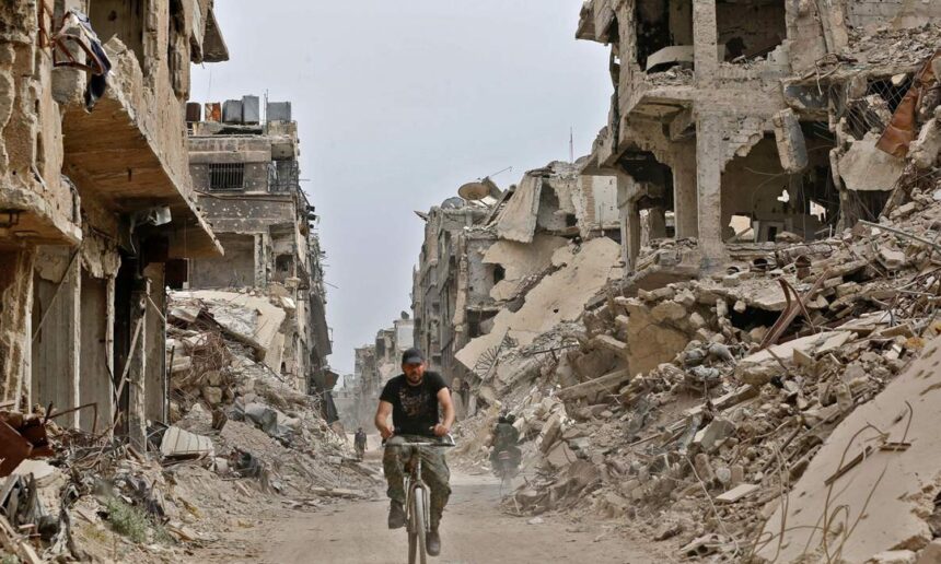 House owners and shopkeepers in the neighborhoods of Uruba, AlTakadum, and March 8, in Yarmouk Camp, have called on the concerned authorities to clear the rubble piles that continue to block civilians’ return to their houses and property.
