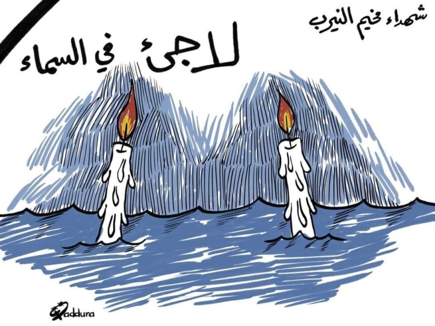 Palestinian cartoonist Ahmed Kaddoura drew a painting expressing his solidarity with the victims of the boat that sank off the Tunisian coast a few days ago.