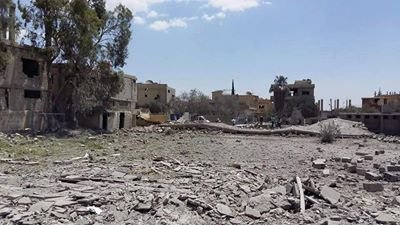 The town of Khan Al Shieh in Damascus suburb is considered one of the most towns that were targeted with explosive barrels, as the number of barrels that were dropped by helicopters of the Syrian regime, has reached 860 barrels.