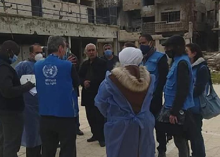 A United Nations delegation paid on Sunday a visit to Yarmouk Camp for Palestinian refugees, south of Damascus, Syria.