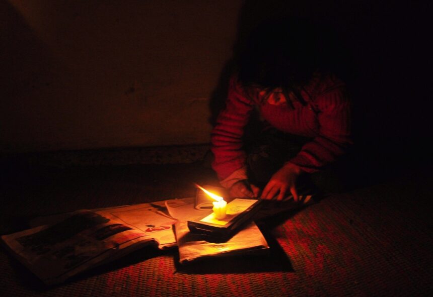 Students and schoolchildren revise for exams on candle light.