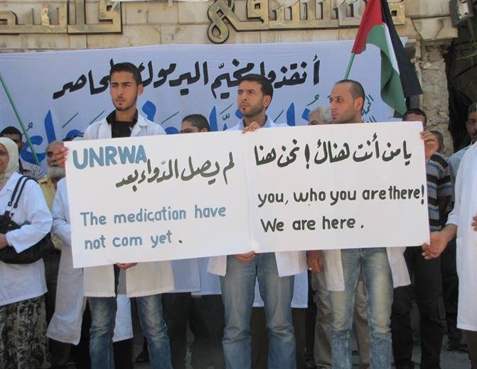 The medical staff of the Palestinian Red Crescent Society organized a sit-in yesterday in front of a hospital in Palestine in the Yarmouk camp to demand “UNRWA” agency, the International Red Cross, Syrian Red Crescent , and the medical and humanitarian organizations to allow the entry of medicine and medical supplies to the camp due to the deterioration of the health situation in the camp as well as the suffering of the camp from a severe shortage of medicines and the spread of many chronic diseases ,disease typhoid, and jaundice among Al-Yarmouk residents.