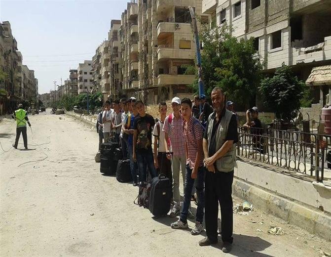 Meanwhile, a number of Yarmouk besieged students exit yesterday in order to perform general information exam and return beck, where the National Commission inside the camp completed arrangements for that.