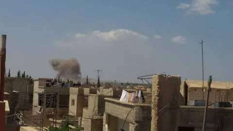 A mortar shell targeted Al- Redah Street in Khan Al- Shieh camp for Palestinian refugees in Damascus Suburb which led to material damage, coincided with sporadic shelling that targeted the surrounding farms and towns.