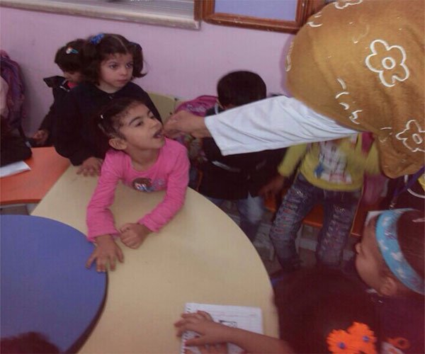 In central Syria, Al Aedein Camp in Hama, a campaign of polio vaccination for children less than 5 years were launched, while the AGPS reporter said that the campaign, which began on 18/10 / 2015 and will continue till 22 /10 /2015, included the children of the camp and residents of accommodation centers.
