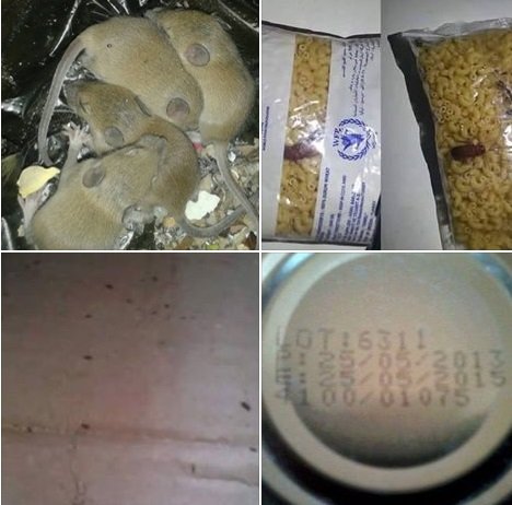 Activists shared photos of expired aid. The activists confirmed that those aids were distributed to the trapped people in the Yarmouk camp in Damascus. Pictures showed some aid provided by international bodies which contain insects and some other were decayed, while some images show dead rats inside one of the food rations. Another picture shows an expired relief materials.