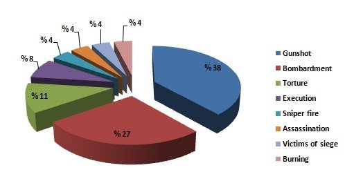 The AGPS pointed out that the Palestinian victims who died during last October dispersed by Syrian cities as follows: 8 refugees in Damascus, 8 refugees in Damascus suburb, one refugee in Quneitra southern Syria, and 9 refugees died in scattered areas.